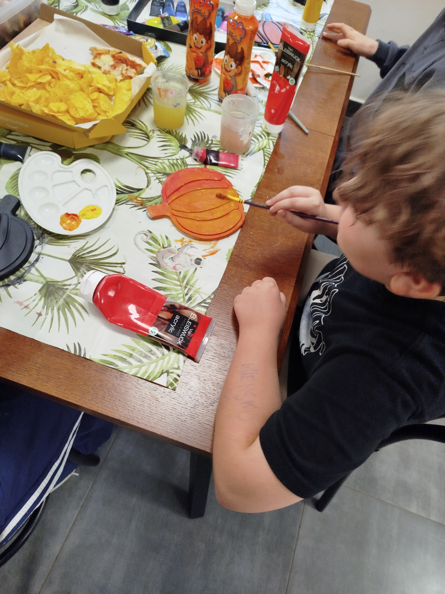 Uczestnicy malowali dynie w formie odlewu gipsowego, a każda praca stała się wyjątkowym dziełem sztuki. To piękne, jak poprzez kolory i wzory dzieci potrafią wyrażać swoją wyobraźnię i emocje.