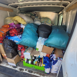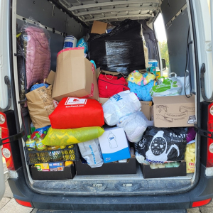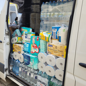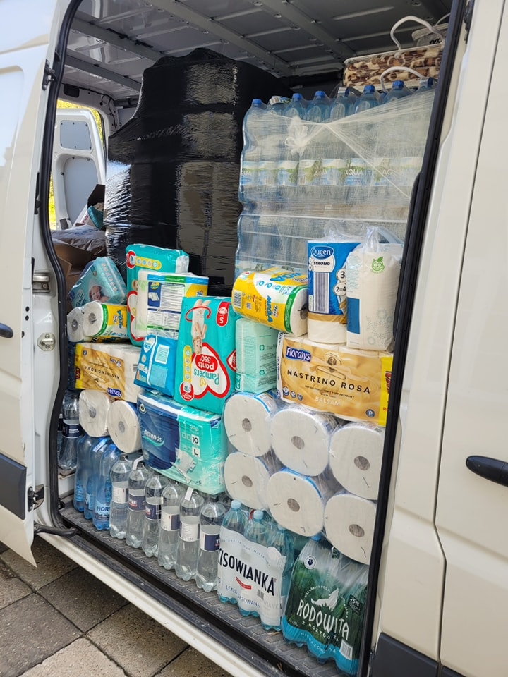 Dzisiaj ruszyła kolejna dostawa, tym razem przy wsparciu pana Michała Gotzmann, który wraz z małżonką i panią dyrektor Małgorzatą Paletta zawieźli rzeczy do Lądka Zdrój.